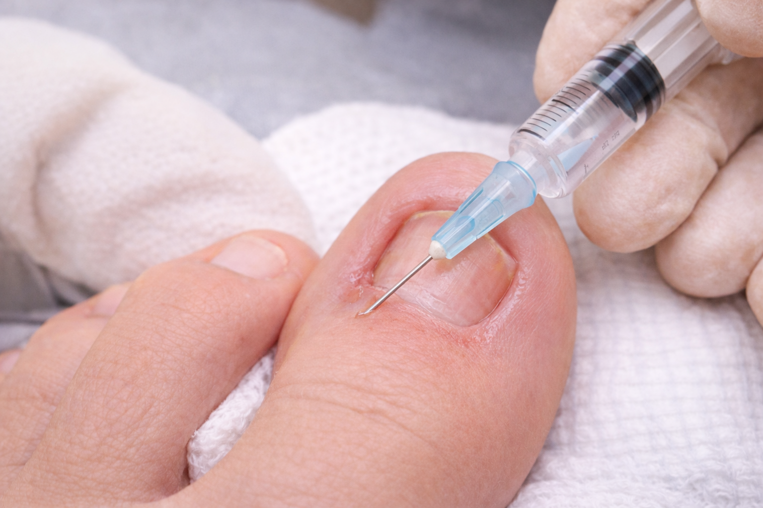 簡単に言うと、食い込んでいる爪の端を少しだけ取り除き、その根元の部分に「フェノール」という薬剤を塗布する方法と言われています。フェノールは爪の根元にある「爪母」と呼ばれる部分に作用するとされており、これによって爪の端が再び強く伸びにくくなる仕組みだと説明されています。