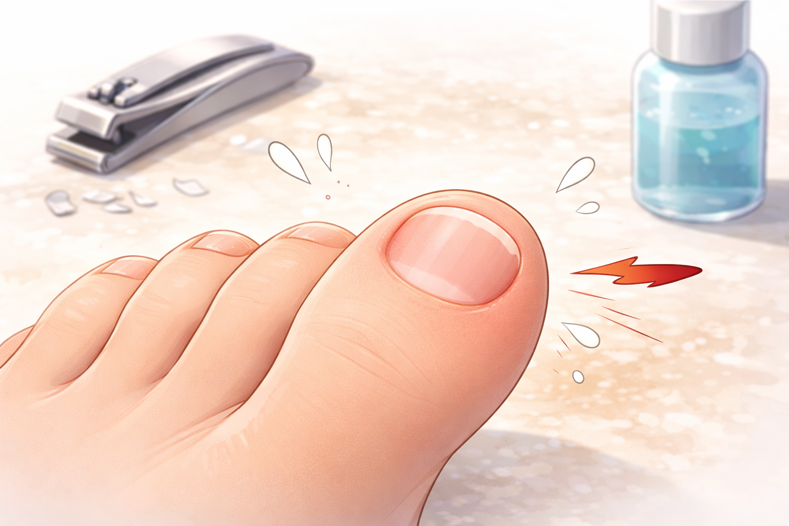 例えば、爪の端が皮膚に食い込んで赤くなっている場合や、歩いたときに痛みを感じる場合は、爪のトラブルが起きている可能性があると説明されています。このような状態では、無理に爪を短く切ったり、皮膚を触ったりすると刺激になることもあると言われています。