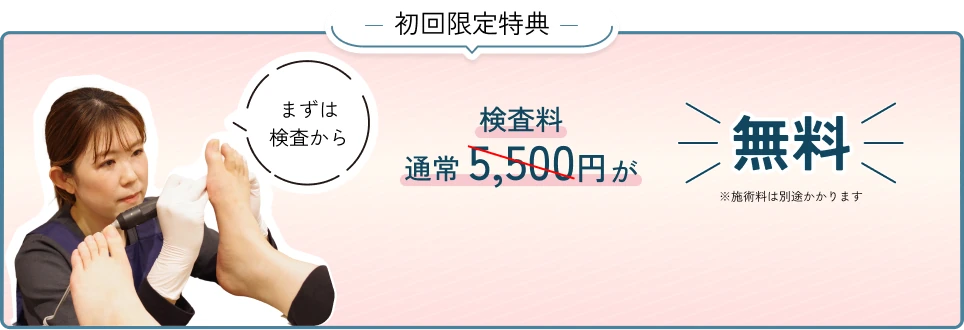巻き爪になったきっかけや、今の症状で困っていることなどしっかりカウンセリングします。爪の状態や皮膚の状態を確認し検査いたします。