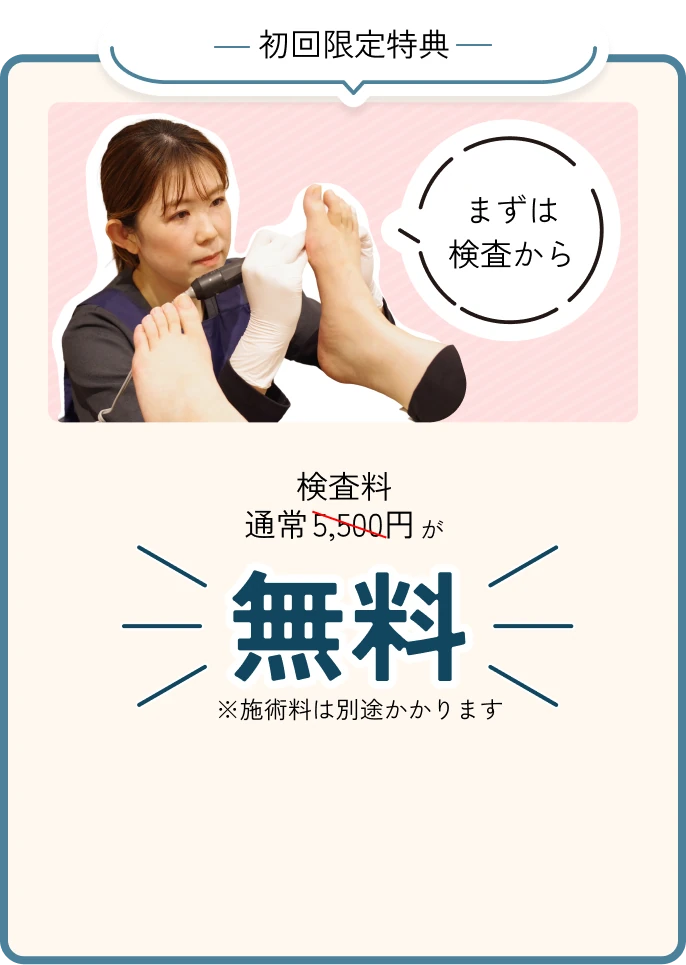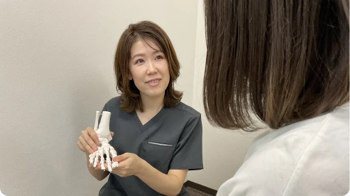 爪の状態や生活様式など、巻き爪となった背景を踏まえて原因をしっかりお伝えします。内容により料金は変化しますが、施術前に説明し、納得した状態で施術をい受けることができます。