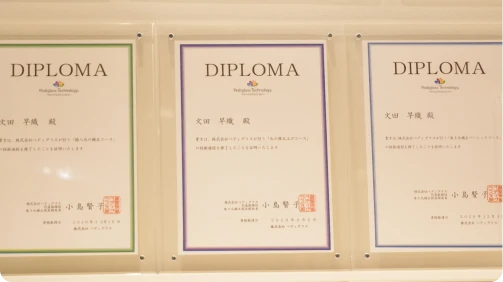当院ではペディグラスという資格を施術者全員が取得しています。厳しい試験を乗り越え、知識・技術・人間力を備えた施術家です。